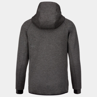 79% polyester/15% viscose/6% elastane. Raglan sleeves. Jersey lined hood. Two tone contrast drawcord with plastic tips. Collar high full length low profile zip. Two front zip pockets with fused seams. Contrast elasticated cuffs. Contrast stretch bound hem.